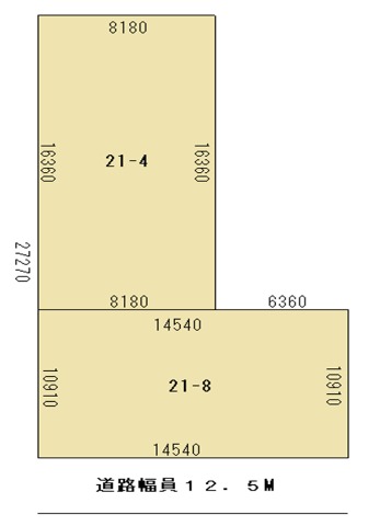 | 備考 | 21番8 158.67㎡(47.99坪)・21番4 133.88㎡(40.49坪)・21番4 敷地内に電柱あり・21番8敷地外道路東側に電柱あり・歩道GLより敷地高低差あり・隣地境界杭・測量確認渡し |