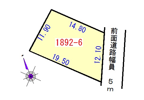 | 接道/向/間口 | 幅員5m/南東向/間口12.10m |
