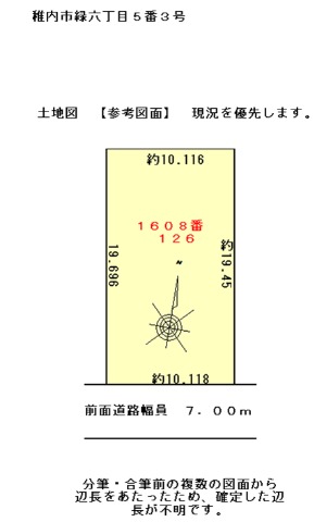 | 接道/向/間口 | 幅員7m/南向/約10.11m |