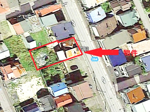 | 備考 | 解体更地渡し・平成21年7月27日国土調査による成果あり・現在、第三者所有建物あり (売買契約成立後、地主により解体致します)解体終了後引渡となります。実行日は、売主、買主の協議の上、決定と致します。土砂災害警区域(標高約5m)ハザードマップ参照 |