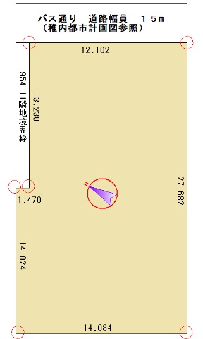 | 接道/向/間口 | 幅員 15m/北東 向/12.102 m |